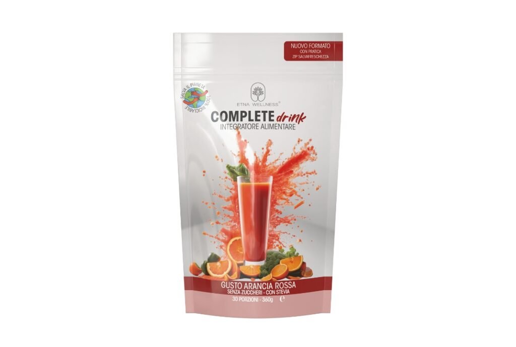 Complete Drink è un integratore alimentare Made in Italy al gusto di arancia rossa, a base di verdure, fibre e fermenti lattici, arricchito con vitamine, minerali ed enzimi. Senza zuccheri, dolcificato con Stevia.
