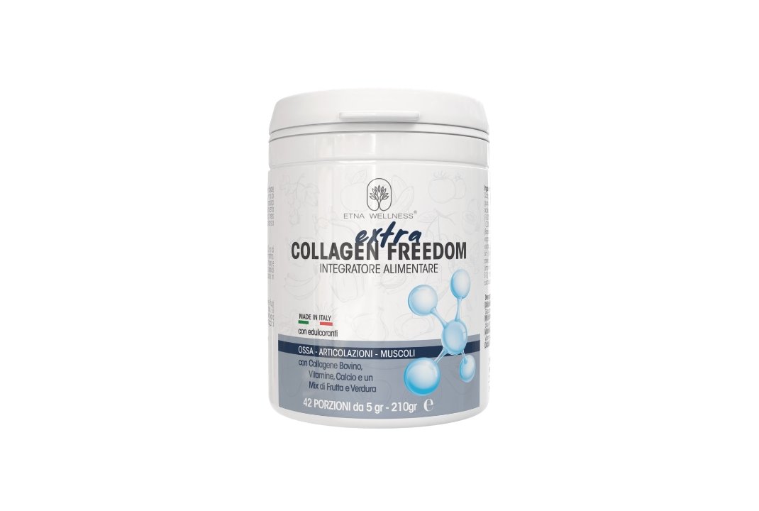 COLLAGEN EXTRA FREEDOM è un supplemento nutrizionale a base di collagene idrolizzato di alta qualità specificamente formulato per supportare la salute di articolazioni cartilagini tendini e legamenti favorendo mobilità flessibilità e libertà di movimento. Il collagene presente è idrolizzato ovvero scomposto in peptidi di piccole dimensioni facilmente assorbibili dall’organismo. Questo garantisce massima biodisponibilità ed efficacia. Il collagene è il principale componente proteico delle cartilagini articolari e l’integrazione supporta il mantenimento di articolazioni sane e funzionali particolarmente importante con l’avanzare dell’età. Contribuisce alla normale struttura cartilaginea mantenendo elasticità e resistenza delle cartilagini che proteggono le superfici ossee durante il movimento. Favorisce il mantenimento della mobilità articolare e della flessibilità supportando la libertà di movimento in tutte le attività quotidiane e sportive. Il collagene è fondamentale anche per la salute di tendini e legamenti il tessuto connettivo che stabilizza le articolazioni e permette il movimento. L’integrazione regolare con collagene può contribuire a ridurre sensazioni di rigidità e disagio articolare migliorando il comfort nei movimenti. La formula può essere arricchita con vitamina C (essenziale per la sintesi del collagene) acido ialuronico glucosamina o condroitina per un supporto ancora più completo.